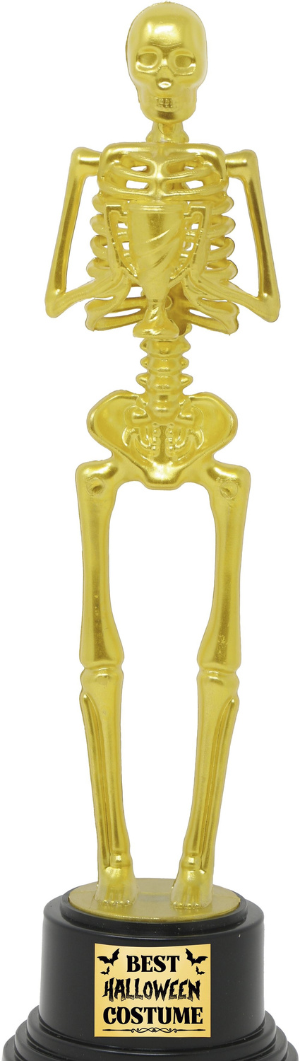 Trofeum wykonane jest z tworzywa. Statuetka w kształcie szkieletu, który trzyma puchar w rękach, jest w złotym kolorze. Figurka kościotrupa umieszczona jest na czarnej podstawie. Postument z jednej strony posiada plakietkę z napisem: BEST Halloween COSTUME.