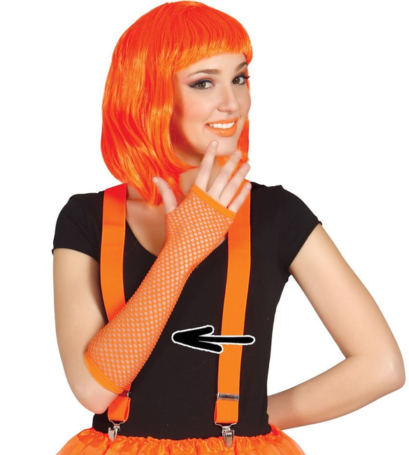 Rękawiczki kabaretki (siatkowe) bez palców w kolorze pomarańczy w intensywnym neonowym odcieniu. Idealne w stylizacji różnych charakteryzacji: rock, disco, a nawet warzywo jak marchew czy dynia. Niezbędny gadżet w damskiej szafie, sprawdzi się podczas wielu okazji.