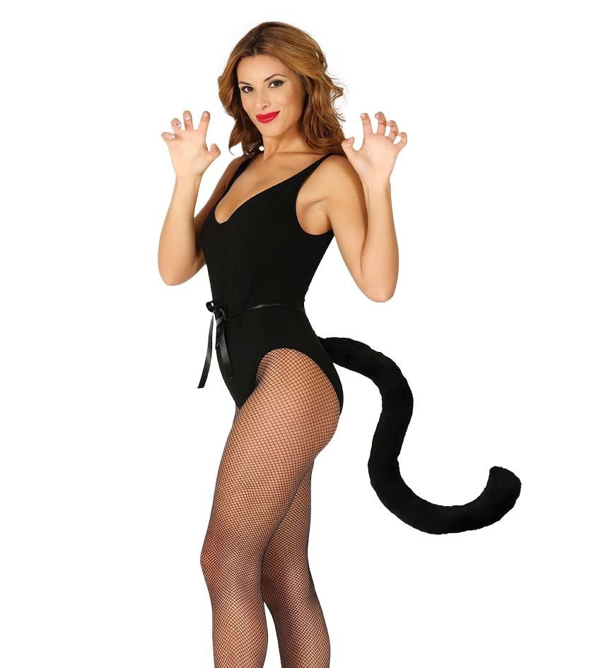 - Ogonek wykonany z czarnego włochatego materiału. W środku ogonka znajduje się wypełnienie, dzięki któremu zyskuje na objętości jak pluszak. Ogonek ma wywinięty kształt i przymocowaną na końcu szlufkę.