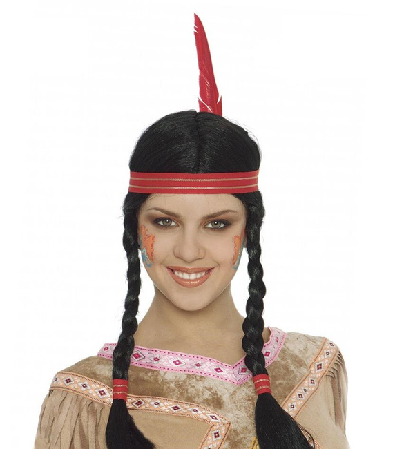 - Indiańska peruka z opaską i piórkiem wykonana z włosów sztucznych. Włosy czarne zaplecione w dwa warkocze. Z powodzeniem posłuży także do przebrania czarownicy, Wednesday Adams lub innej postaci.