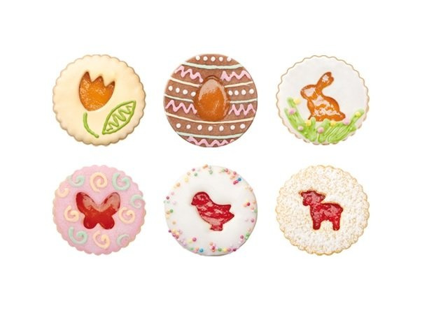 Plastikowe foremki do wykrawania kruchych ciasteczek z nadzieniem, sprawdzą się także w innych wariantach na przykład w kształcie okręgu w całości lub z wyciętym środkiem w dowolnym kształcie. Z powodzeniem można użyć ich do formowania masy cukrowej czy obkładu na kanapkach w wielkanocnym stylu.