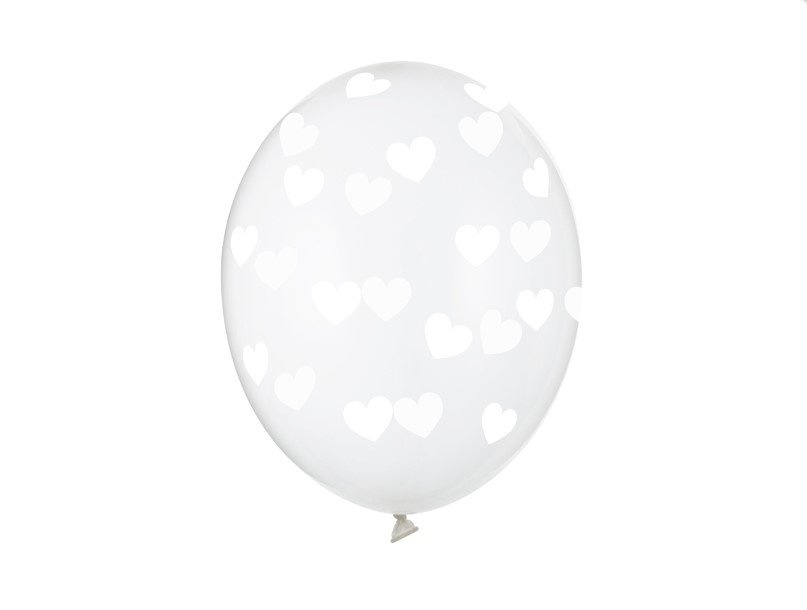 - Przeźroczysty balon lateksowy z nadrukiem jednokolorowych białych serduszek na całym obwodzie. Średnica balona ok 30 cm (12"). Wykonane z dobrej jakości gumy - łatwo się pompują. Balony mogą być napełnione powietrzem lub helem.