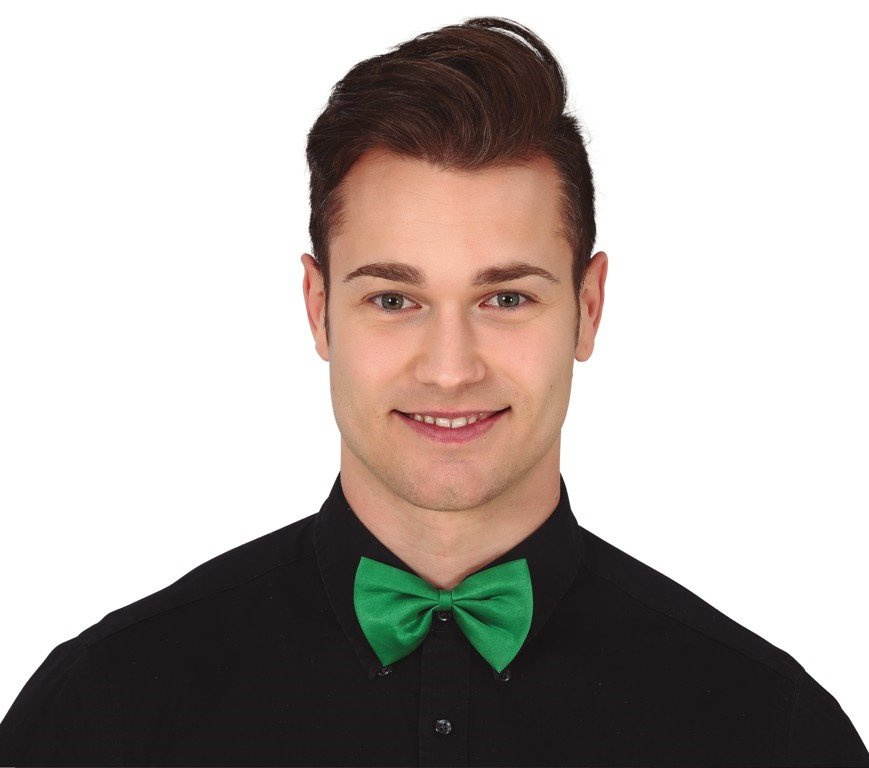 Muszka w kolorze zielonym na regulowanej tasiemce z zapięciem. Mucha wykonana jest z gładkiego materiału, lekko połyskującego. Idealny dodatek do stroju eleganta z humorem, elfa świątecznego, element wyróżniający na wieczór kawalerski, lub z okazji św. Patryka.