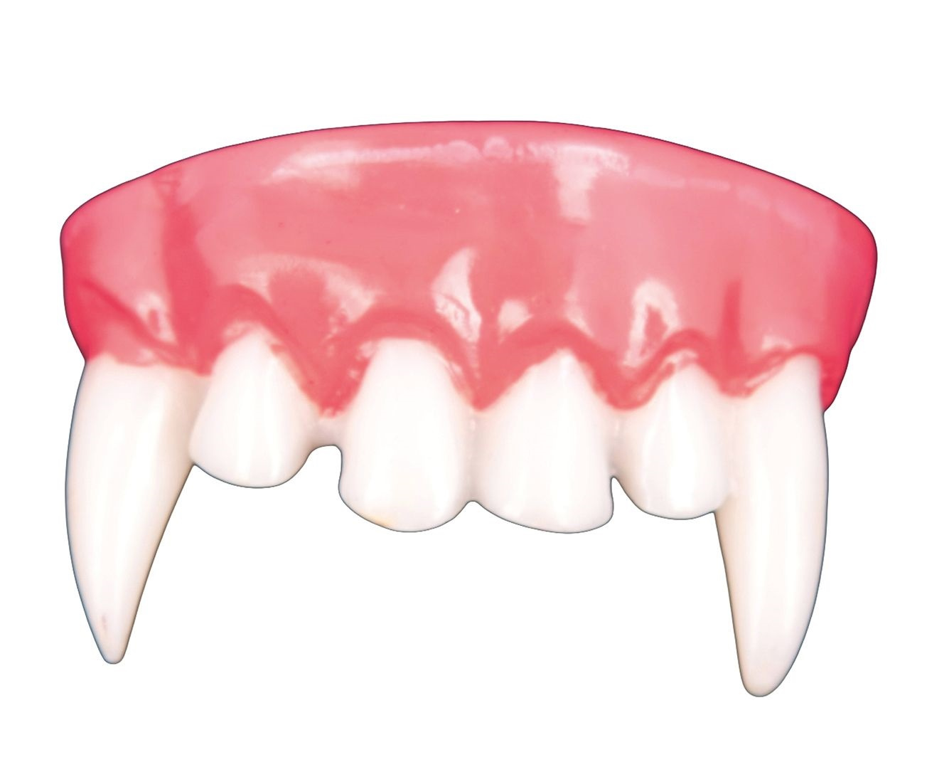 - Szczęka z wystającymi kłami to niezbędny dodatek do przebrania wampira lub Draculi. Szczęka składa się z górnej nakładki na zęby z białymi krzywymi zębami oraz linią dziąseł. Produkt wykonany ze sztucznego tworzywa.