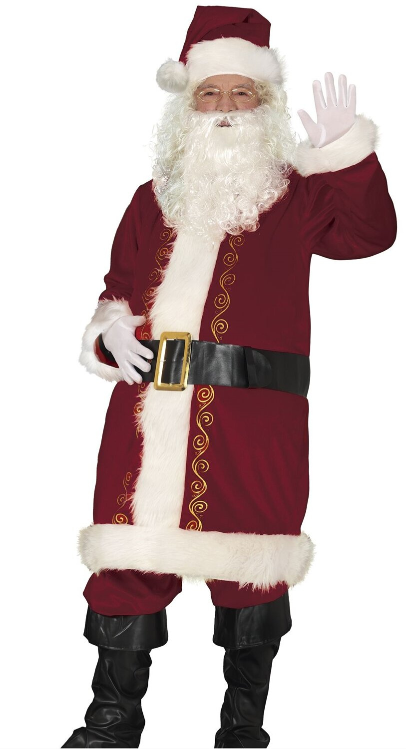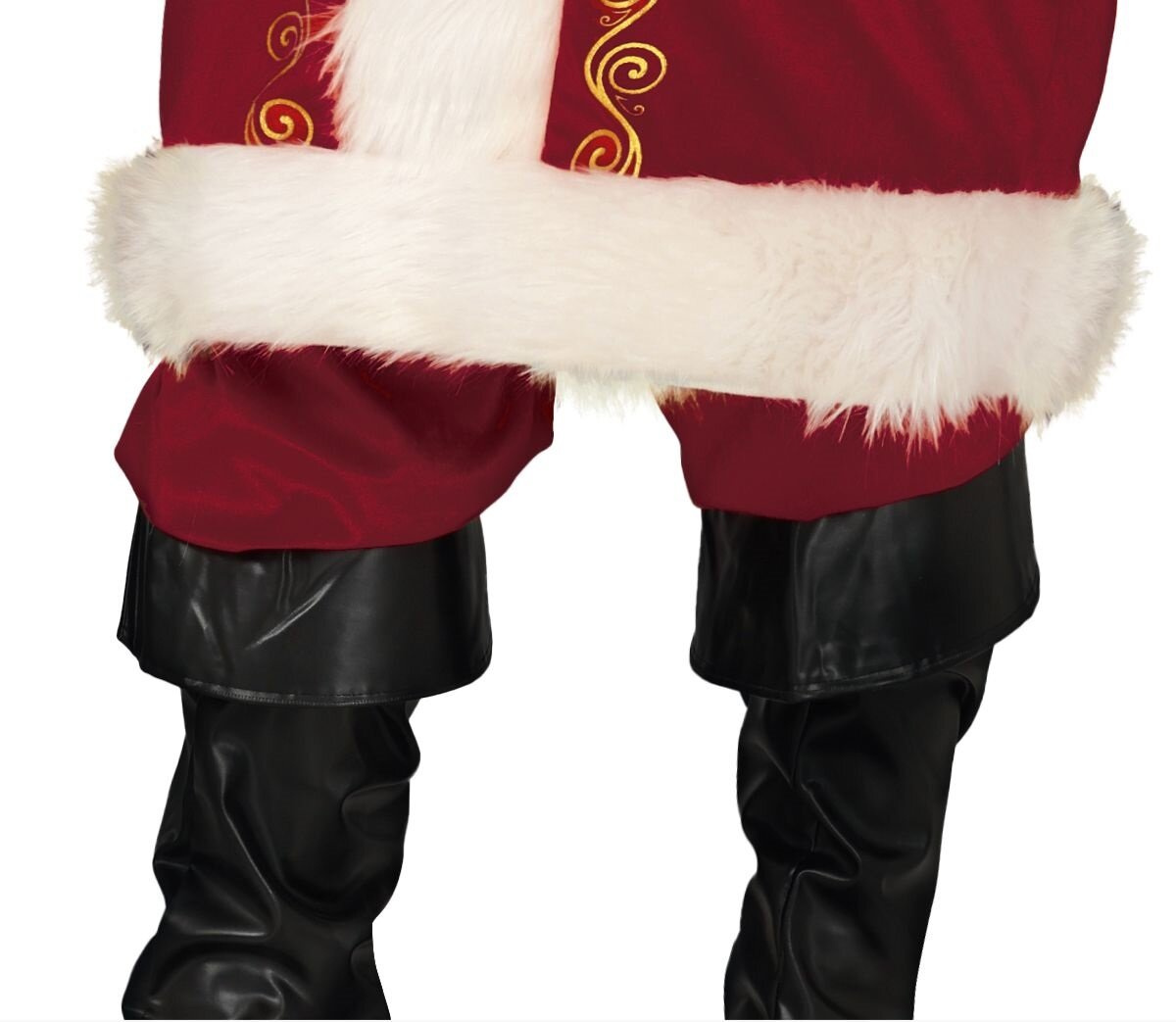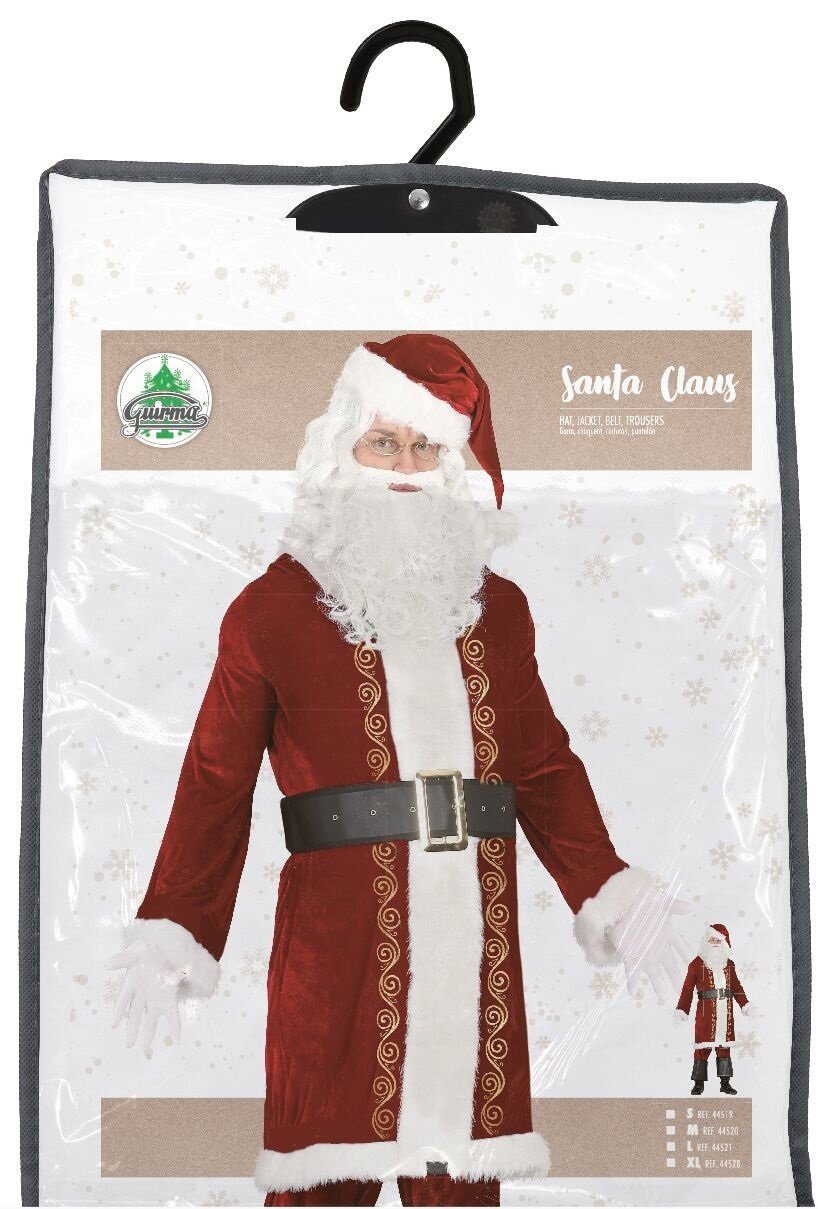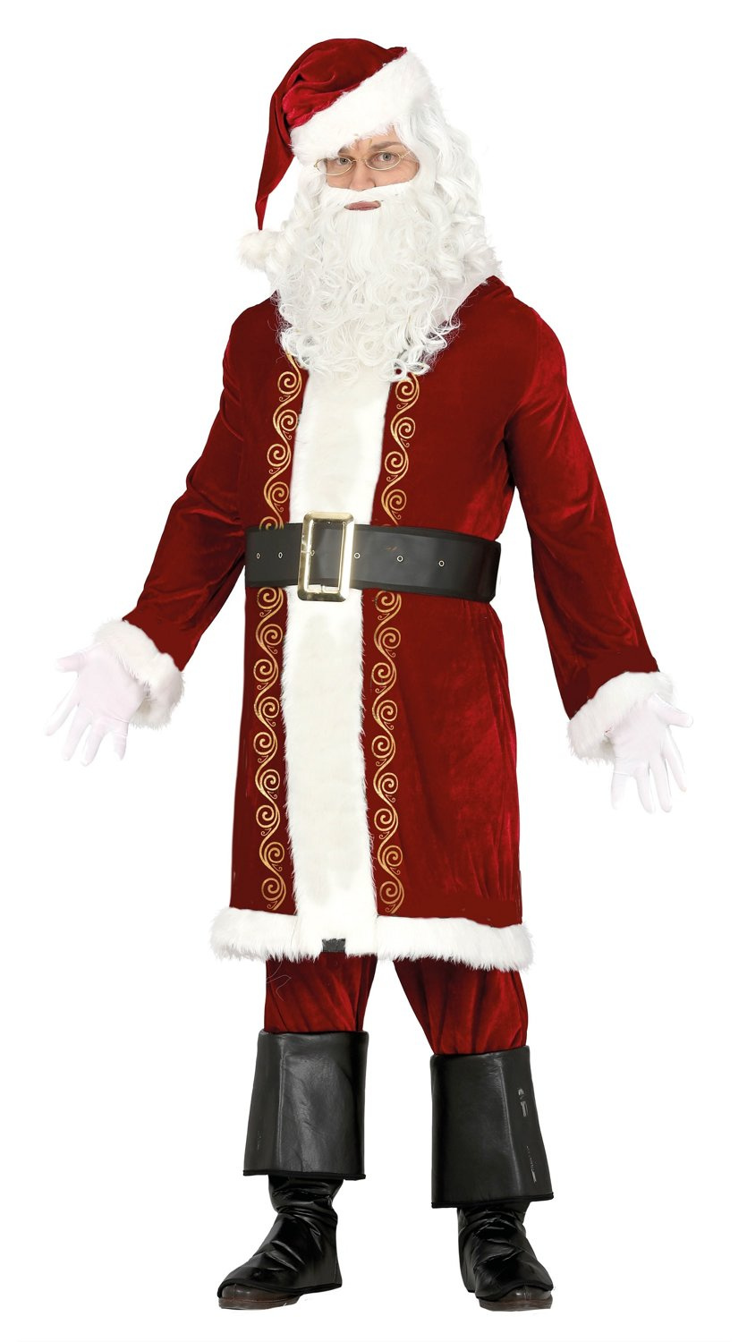 - Przebranie świętego Mikołaja w bardzo eleganckim i zdobionym stylu. W zestawie: bluza, spodnie, czapka oraz pas. Komplet nie zawiera: peruki, brody, rękawiczek, ani butów.