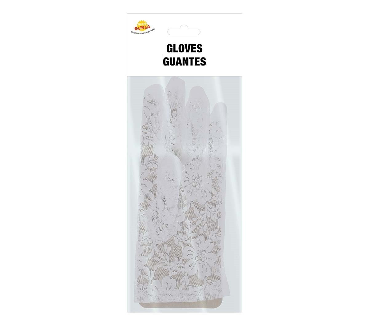 Rękawiczki pięciopalczaste wykonane są z koronki w białym kolorze. Idealne w stylizacji różnych charakteryzacji: dama z lat 20-tych, księżniczka, biała dama, panna młoda, królowa zimy, a także inne bajkowe postacie. Niezbędny gadżet w damskiej szafie, sprawdzi się podczas wielu okazji, nie tylko podczas balu przebierańców!