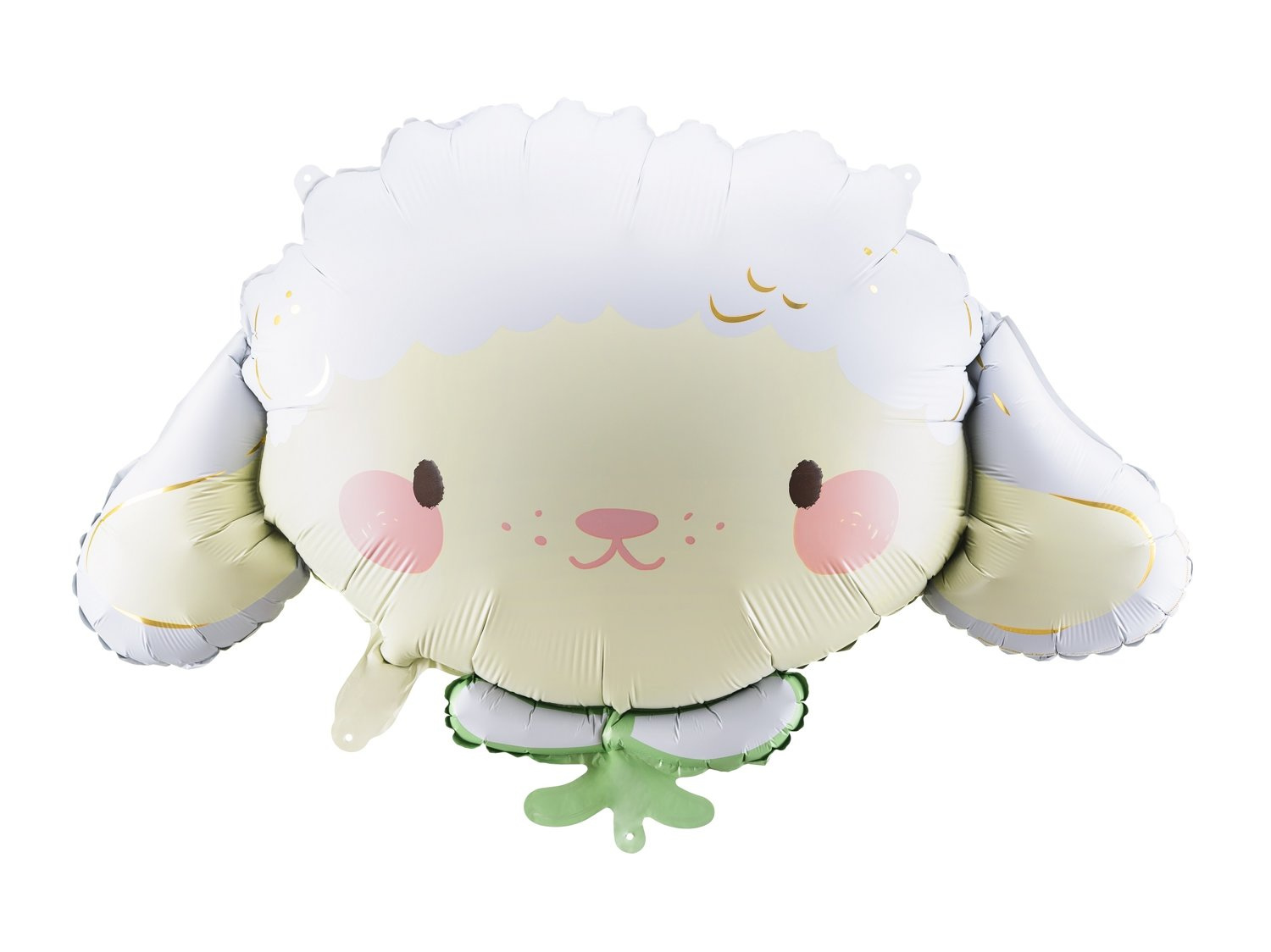 Balon foliowy w kształcie głowy uroczej owieczki z zielonym kołnierzykiem. Balon posiada dwustronnie taki sam nadruk, sprawdzi się na przyjęciach w stylu zwierzątka czy wieś lub farma, a także jako dekoracja na Wielkanoc. Balon doskonale nadaje się do pompowania helem - unosi się wówczas w powietrzu, może być także wypełniany powietrzem - posiada specjalne uchwyty do przywiązania.