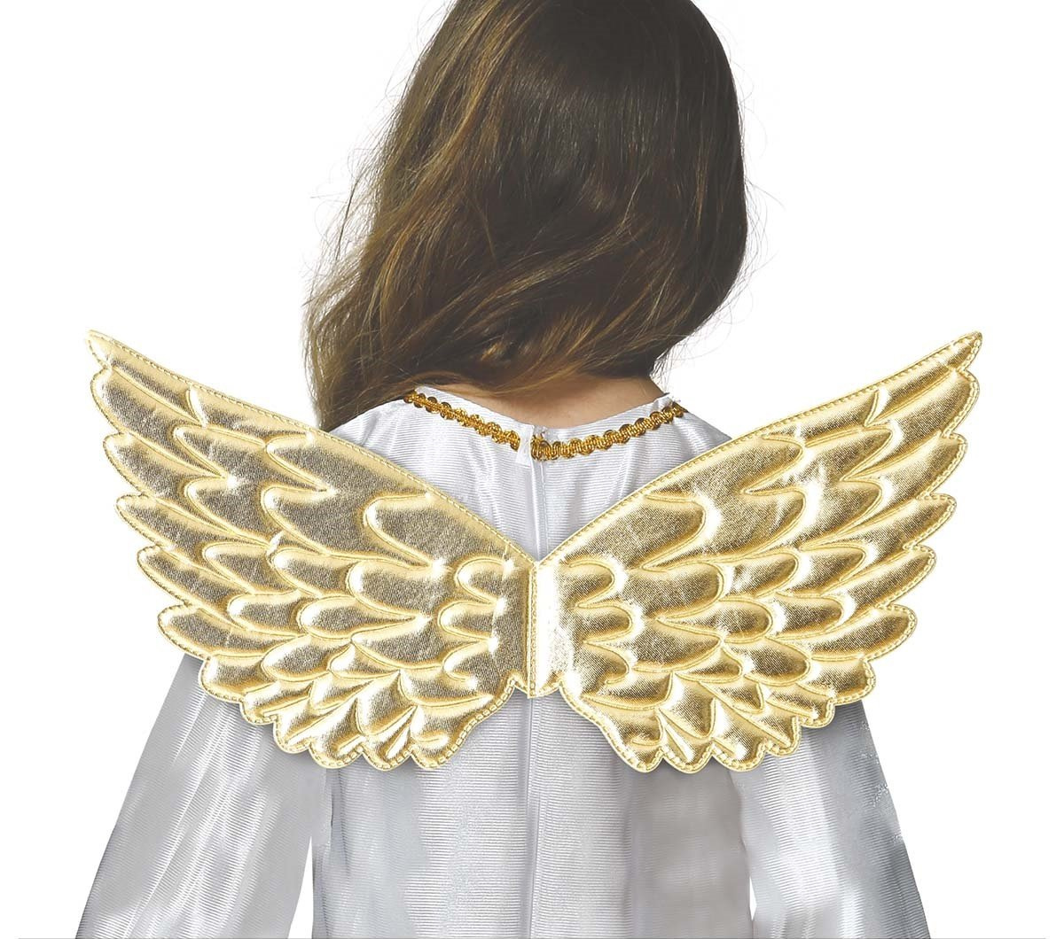 - Piękne skrzydła anielskie dla dzieci z powodzeniem posłużą jako element innego skrzydlatego stworzenia. Skrzydełka są wyprofilowane, wykonane z materiału w złotym, połyskującym kolorze. Skrzydła mocowane na gumkach.