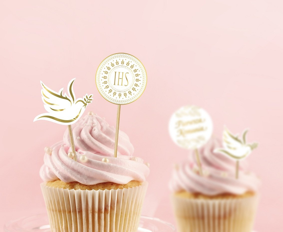 Komunia - Pikery do muffinek IHS złote 6 sztuk