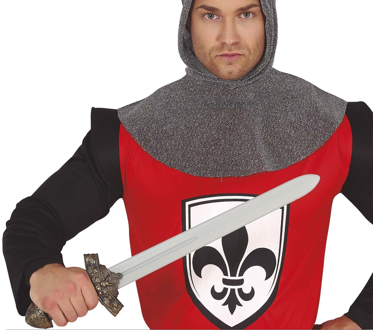 Super dodatek do stroju króla, rycerza, Spartanina, Rzymianina czy gladiatora, elementy wykonane z plastiku. Miecz sprawdzi się zarówno dla dorosłego, nastolatka lub dziecka. Broń posiada szare "ostrze" w matowym kolorze oraz rączkę w kolorze starego złota z wytłaczanym ornamentem.